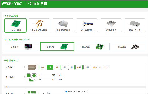 基板製造に関しては試作、スポット案件に加え、量産製造も承っております。またアートワーク設計、部品調達、部品実装、ハーネス加工までインターネット上の「ワンストップ・ソリューション」で効率化に寄与いたします。