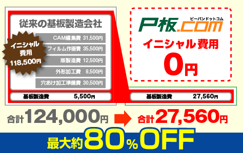 フィルムやシルク版の保管を行わない、効率的な異種面付工法で「イニシャル費用の完全無料化」を実現し、電子機器開発において、最大のネックとなる「プリント基板の製造に掛かる多額なイニシャル費用の回収ができない!」を解決いたします。