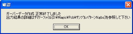 - 処理が終了すると、下記の「確認」ウインドウが表示されますので 「OK」をクリックして、サマリーファイル(拡張子gbs)で出力結果の確認をするようにしてください。サマリーファイルはアスキーデータですのでワードパッドでの閲覧や印刷も可能です。
