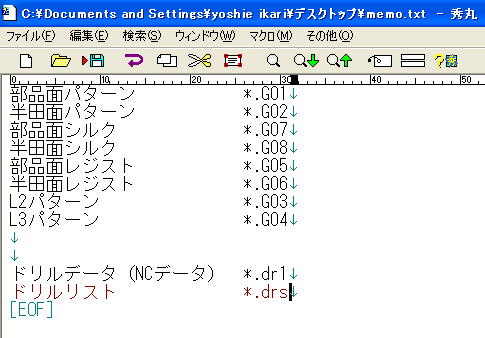 - 製造指示書として、以下のように各層とファイル名称をメモ(*.txt)にまとめて同一フォルダに保存します。