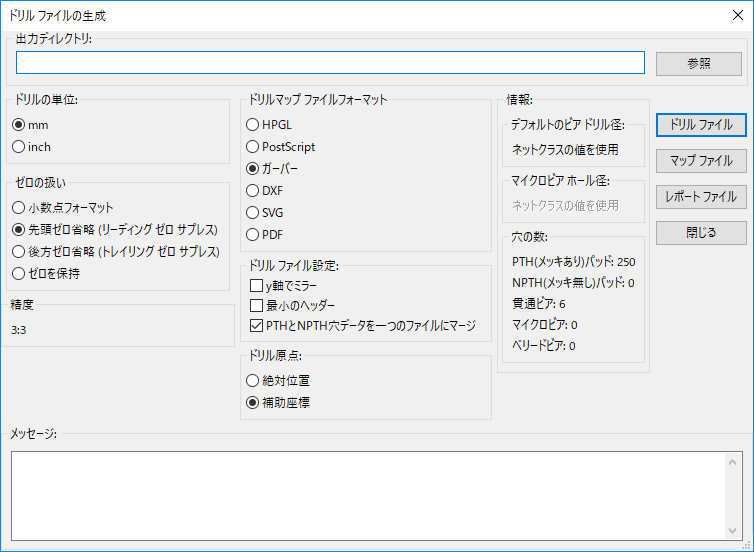 - 「ドリルマップ ファイルフォーマット」項目にて、「ガーバー」を選択します。