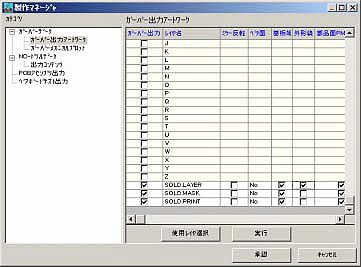 - 「ガーバー出力アートワーク」を選択すると、下記画面になります。ここで、ガーバー出力したいレイヤーを選択します。