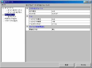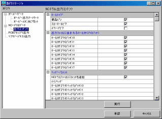 下記のような画面で、カテゴリー「NCドリルデータ」を選択し、出力フォーマットを特に変える必要がありません。 - カテゴリー「出力コンテンツ」を選択すると、下記のような画面になります。ここで「実行」ボタンをクリックしてください。