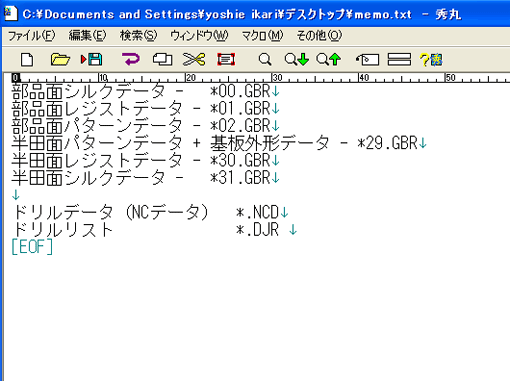 - 製造指示書として以下のように各層とファイル名称をメモ(*.txt)にまとめて同一フォルダに保存します。