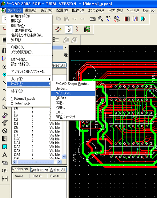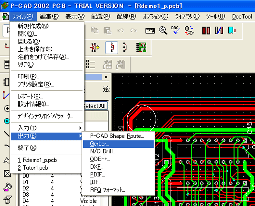 - PCAD 2002 を起動し、基板データを開いてください。(ここでは例としてRdemo1_p.pcbという基板データを使用)