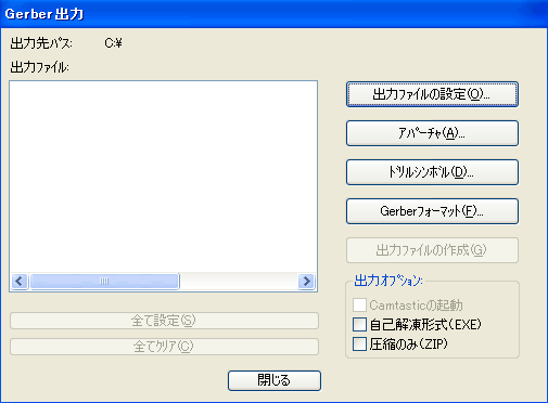 「閉じる」ボタンをクリックしてください。 - 下記の「Gerber 出力」ウインドウに戻ります。「出力ファイルの作成(G)」ボタンをクリックしてください。