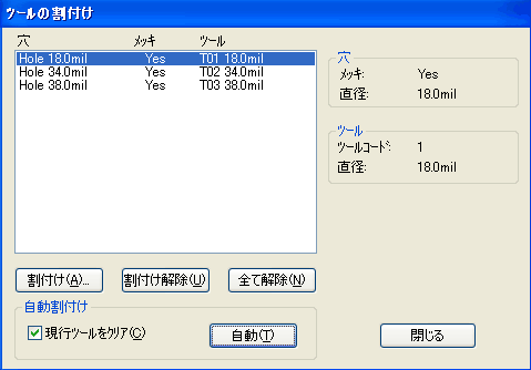 自動割付け設定を以下のようにします。- 現行ツールをクリア(C)のチェックボックスをチェックする。