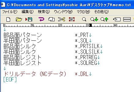 - 製造指示書として、以下のように各層とファイル名称をメモ(*.txt)にまとめて同一フォルダに保存します。