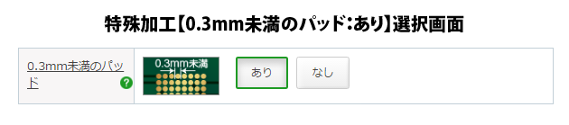 ご注文の際には「1-Click見積」内で特殊加工【0.3mm未満のパッド:あり】をご選択ください。