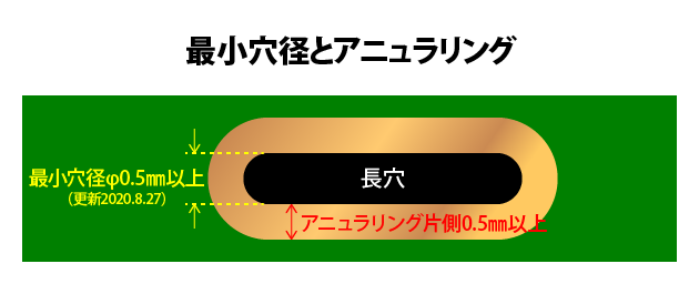 Φ0.7mmΦ0.5mm未満の長穴作成の場合は、ご相談ください。(製造基準変更に伴い2020.8.27更新。詳細は、製造基準書を参照)