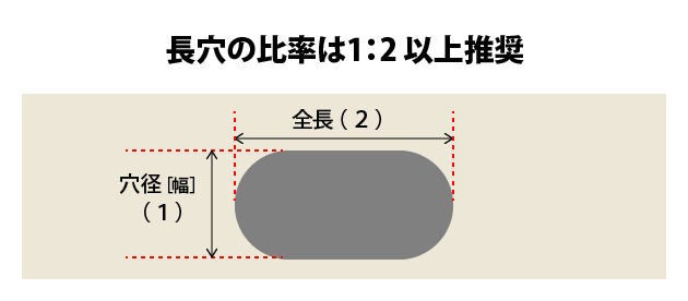 「穴径(幅):全長」の比率は1:2以上を推奨しています。