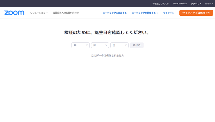 zoom画面の指示にしたがってサインアップ(アカウント作成)をすすめます。