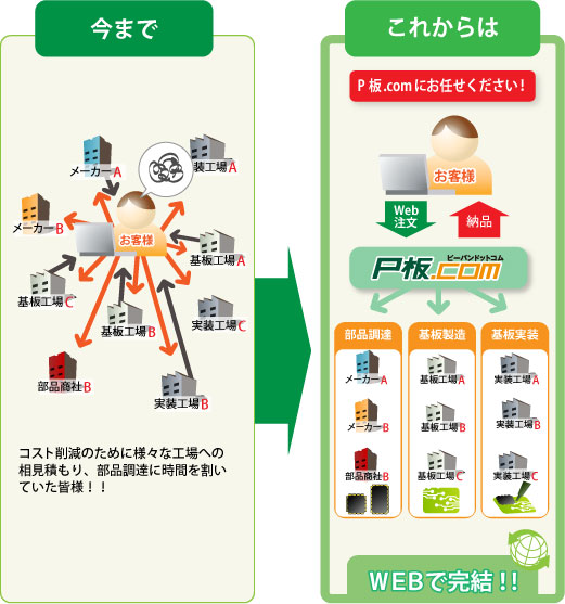 部品調達のエキスパート、P板.comスタッフが個別専任調達しますので安心です。
