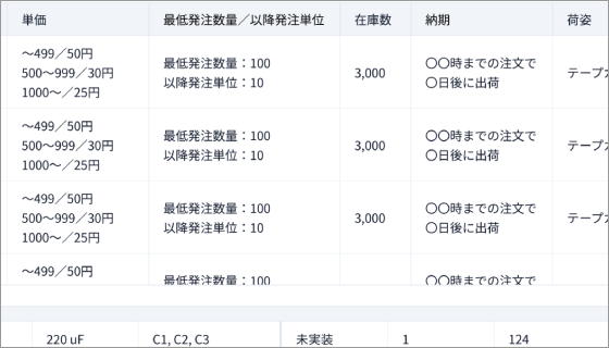クラウド上で常に在庫状況を確認できるため、不足分をスムーズに追加購入可能。さらに、保管中の部品はそのままプリント基板実装サービスに利用できるので、手間なく効率的な製造フローを実現します。