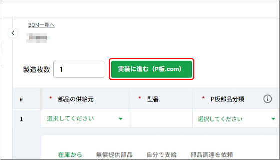 GUGEN Hubで編集したBOM情報から、P板 .comにシームレスに接続。実装に必要な部品の 調達がスムーズに行えます。