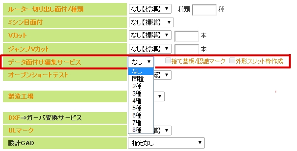 見積り条件入力の「データ面付け編集サービス」に、面付け種類をご選択ください。