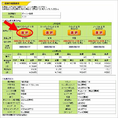 見積回答画面の一番左にある「ウルトラクイックコース」をご選択ください。