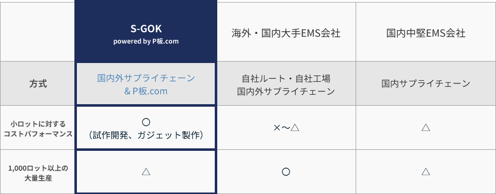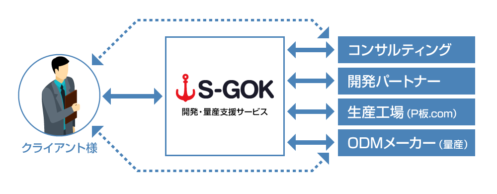S-GOKはプリント基板ネット通販No.1のP板.comから生まれた、開発・量産支援サービスです。