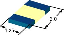 抵抗、コンデンサなどのリードがない表面実装部品です。部品の外形寸法が2.0×1.25mmのため2125型と呼ばれています。