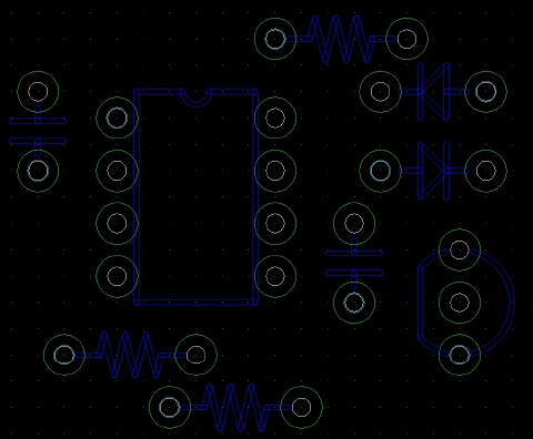 PCBEに標準搭載されているライブラリから部品を選びます。最初にタイマIC 555を配置します。