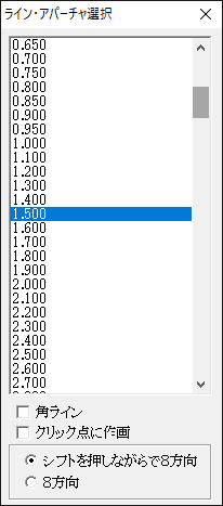 メニュー右にある「アパーチャ:xxx:xxxx」をクリックして、太さを指定します。
