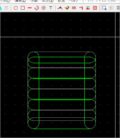 アイコン、またはメニュー右端の「レイヤ1:パターンA」(または準ずる表記)をクリックし、外形レイヤに切り替えます(図14)。
