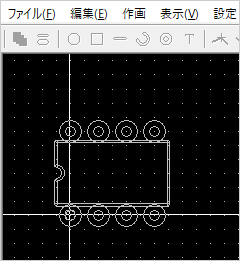 [PartsDiscrete.lib]-[ic\_8pin.dip]を選んでから、[決定]ボタンをクリックすると(図5)、カーソルに部品のシルエットが付いてきます(図6)。