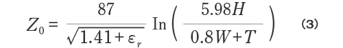 式(2)でMSLの特性インピーダンスZ0を求めることはできますが、実際にはZ0を直接求める式を用います。一例ですが