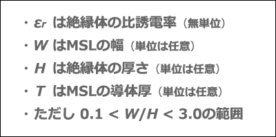 としてMSLの特性インピーダンスZ0を求めることができます(参考文献[1])。ここで、