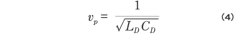 伝送線路内を信号が伝搬する速度である位相速度vpも、分布インダクタンスLDと分布容量CDから以下の式で決まります。