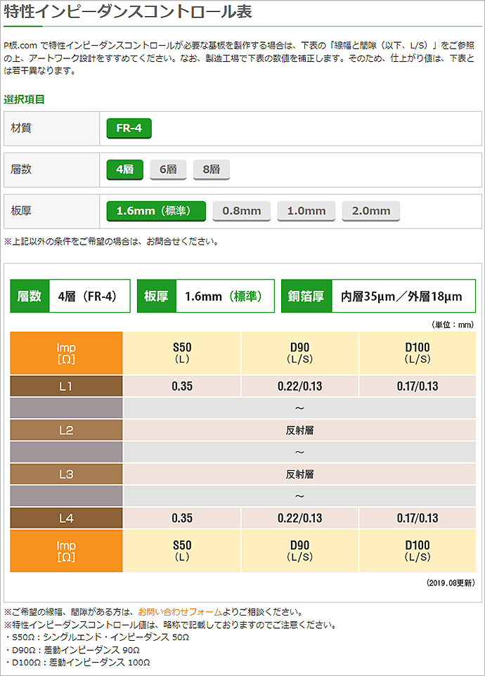 図5 ピーバンドットコムのサイトにある特性インピーダンスコントロール表[2]