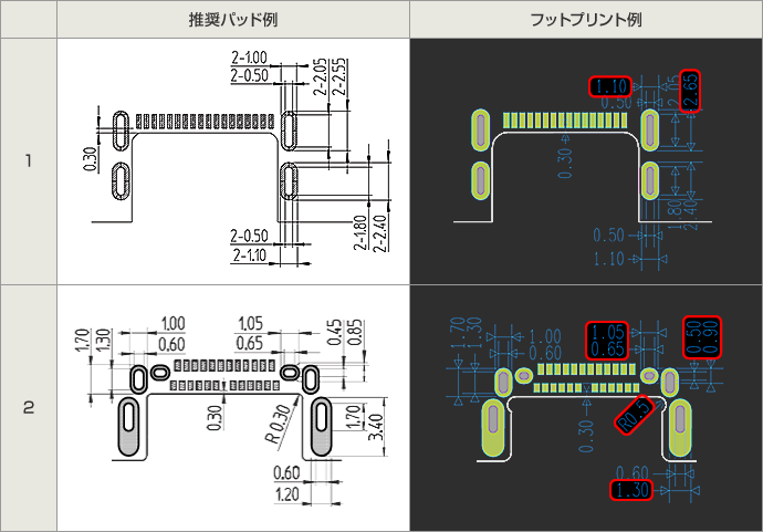 USB Type-Cの推奨パッドは、一般的な製造工場の仕様を超えている場合があります。一般仕様を超えていても大概は製造可能ですが、見積変更が発生します。その理由の一因に「長穴の径・アニュラリング」と「外形線の形状」があります。今回はこの個所に焦点を合わせたフットプリント案をご紹介します。
